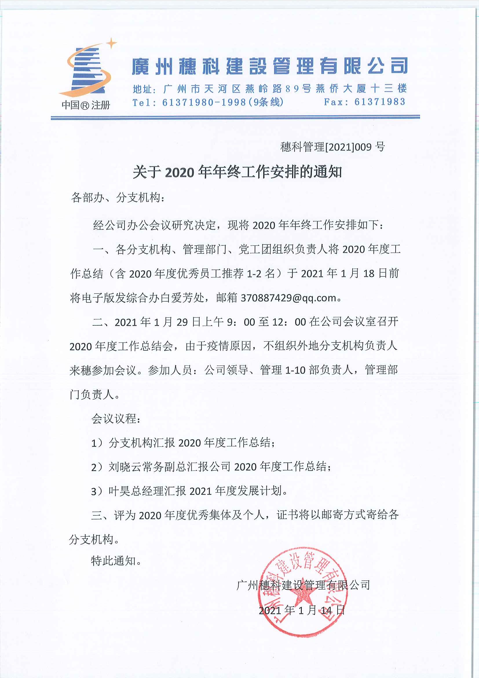 關(guān)于2020年年終工作安排的通知