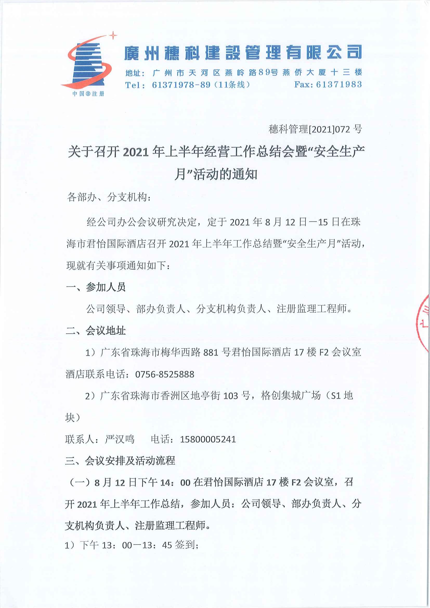 關(guān)于召開2021年上半年經(jīng)營工作總結(jié)會(huì)暨“安全生產(chǎn)月”活動(dòng)的通知