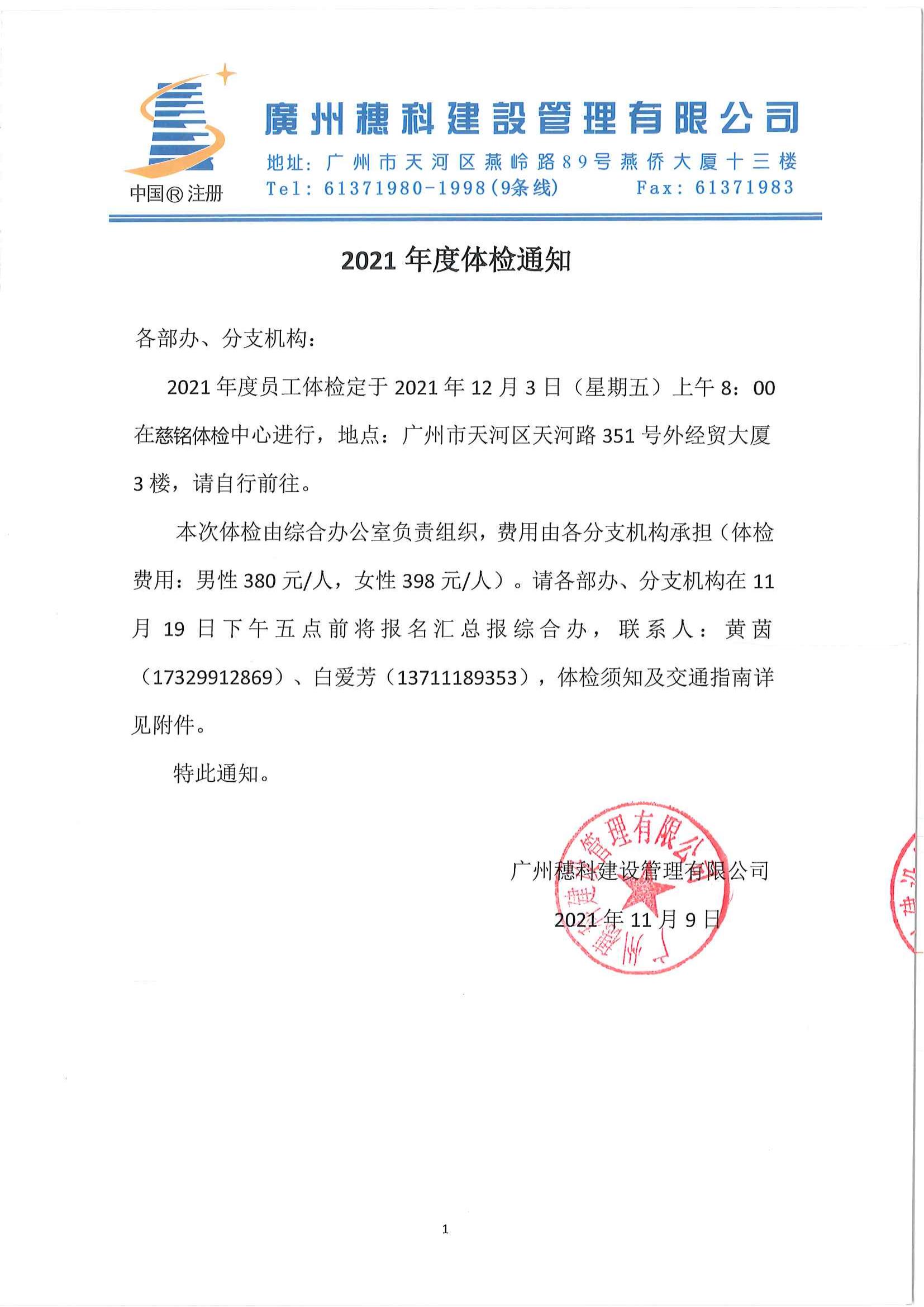 2021年度體檢通知