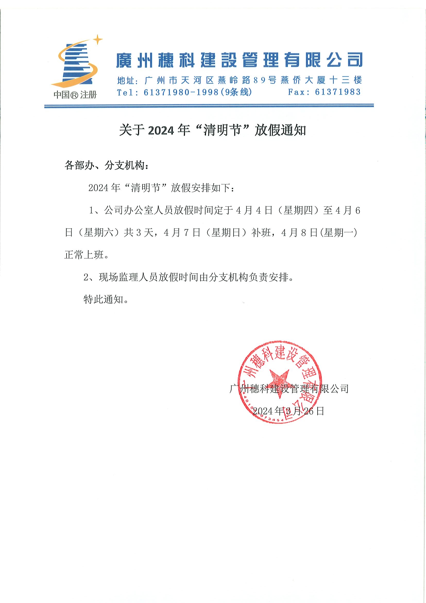 關(guān)于2024年清明節(jié)放假通知