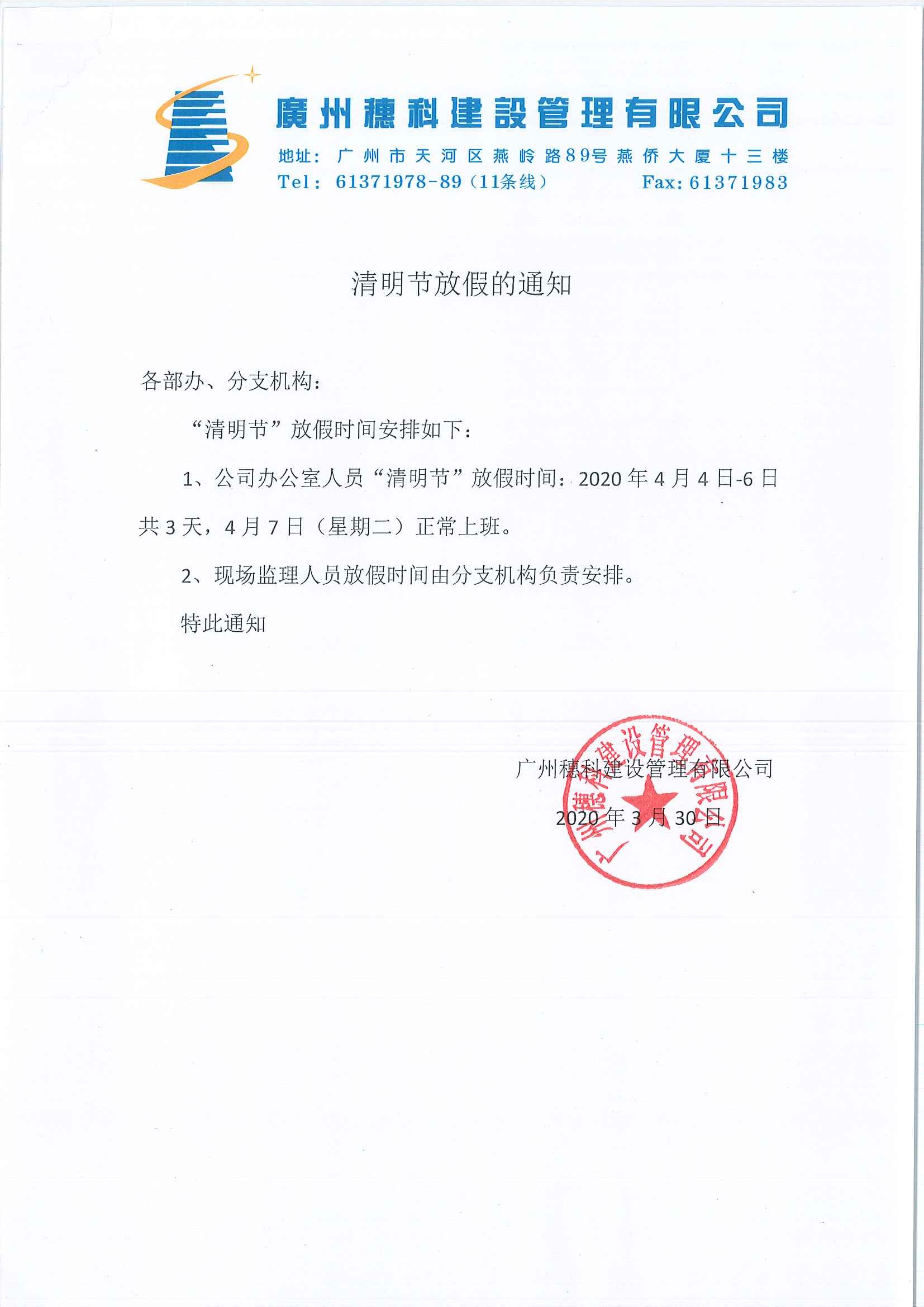 清明節(jié)放假的通知