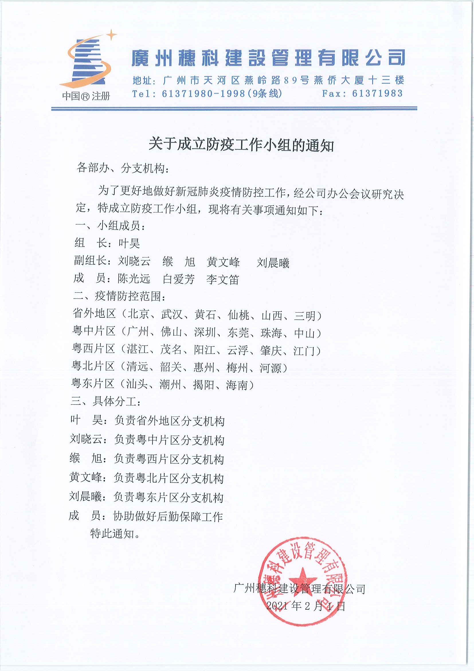 關(guān)于成立防疫工作小組的通知