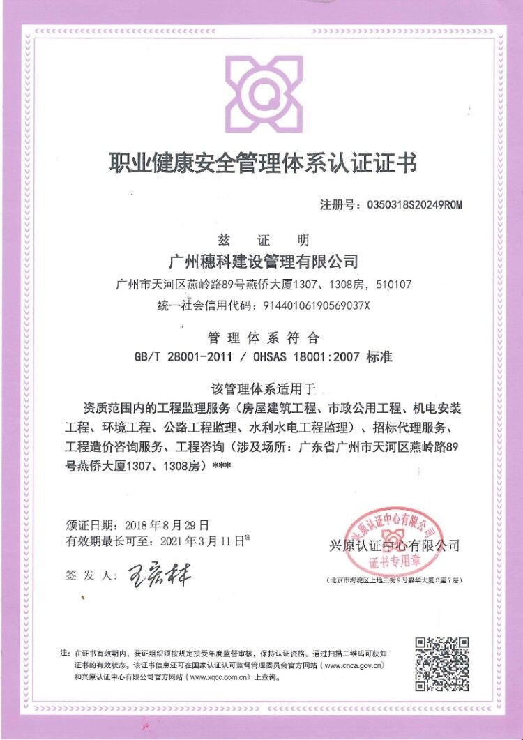 職業(yè)健康安全管理體系認(rèn)證證書(shū)